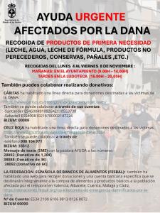 LA FEDERACIÓN DE ESPAÑOLA DE BANCOS DE ALIMENTOS (FESBAL): también ha habilitado una web para recoger donaciones y una cuenta bancaria específica que se destinarán íntegramente a la compra de alimentos y productos básicos a la población afectada por el temporal en Valencia, Albacete, Cuenca, Málaga y Cádiz,