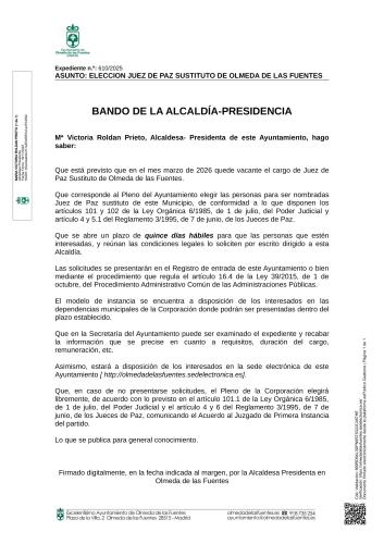 Se convoca Pleno Extraordinario el día 27 de noviembre de 2025 a las 13:00 horas, en 1ª convocatoria y el dia 29 de noviembre de 2025 a las 13:00 horas, en 2ª convocatoria en el Salón de Plenos del Ayuntamieto.