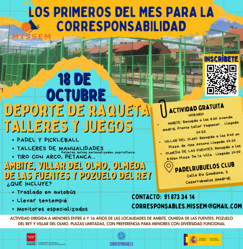 🎾🚌 ¡Excursión PLAN CORRESPONSABLES: DEPORTES DE RAQUETA, TALLERES Y JUEGOS para menores entre 6 y 16 años! 🚀