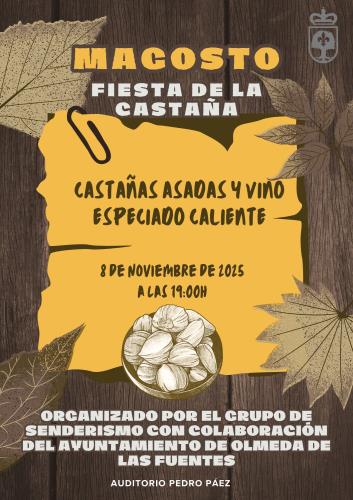 El próximo 8 de noviembre a las 19:00 horas se celebrará el Magosto, o fiesta de la castaña, en el Auditorio Pedro Páez de Olmeda de las Fuentes.
