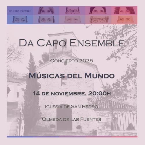 El viernes 14 de noviembre de 2025, a las 20:00 horas, la Iglesia de San Pedro será el escenario del concierto “Músicas del Mundo”, a cargo de Da Capo Ensemble.